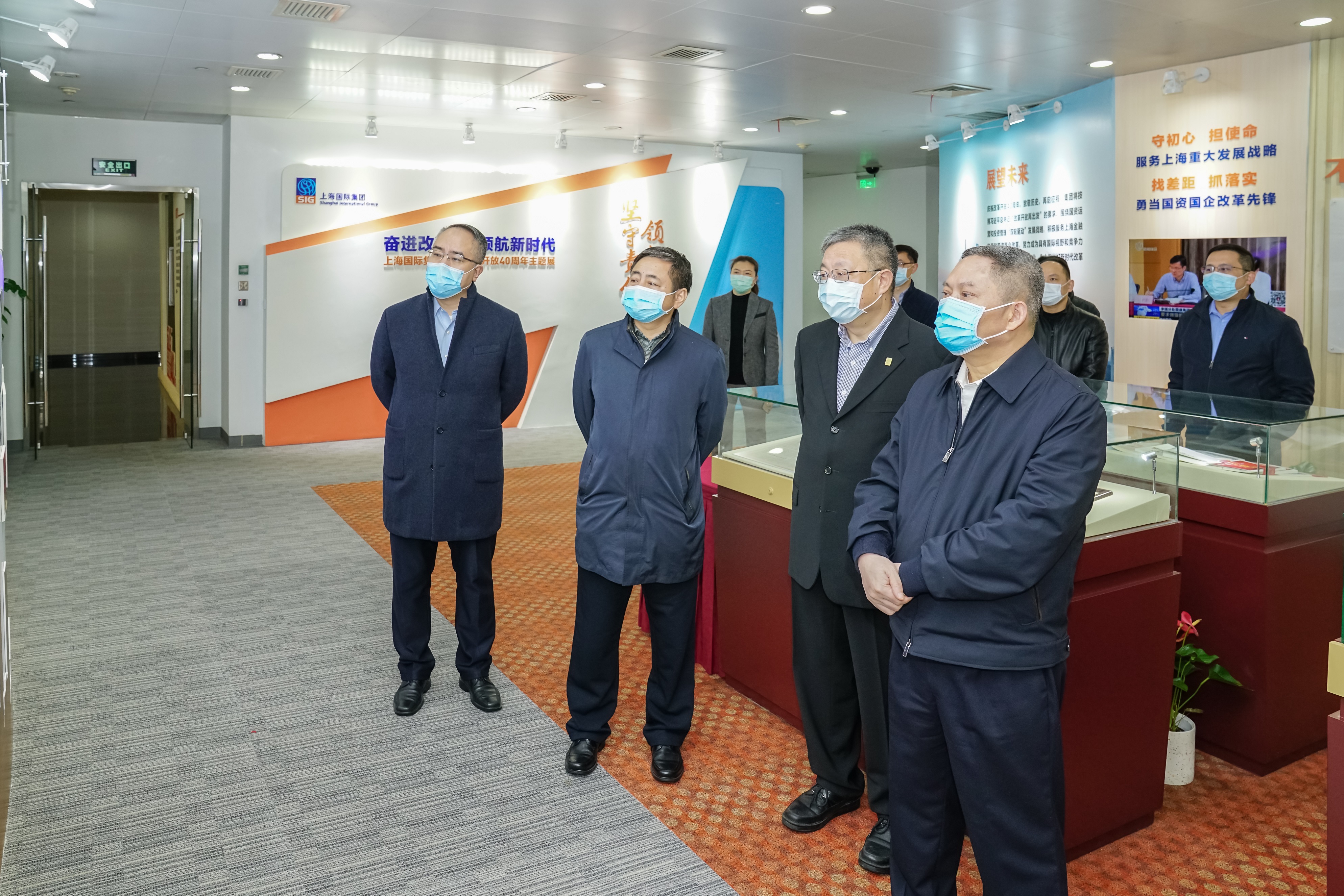 On the morning of March 9, Gong Dao’an, Vice Mayor of the Shanghai Municipal People's Government, visited SIG and listened to a report on SIG's situation of epidemic prevention and control and work and production resumption. Lin Yibin, Deputy Director of the Shanghai Municipal State-owned Assets Supervision and Administration Commission (SHSASAC); Yu Beihua, Secretary of the CPC SIG Committee and Chairman of the Board of Directors; Wu Jun, Member of the CPC SIG Committee and Secretary for the Discipline Inspection Commission; Guan Wei, Vice President and Chief Operation Officer of SIG; Zhou Lei, Chief Investment Officer of SIG; and Ma Haiyan, Member of the CPC SIG Committee and Chairwoman of the Labor Union participated in the survey.