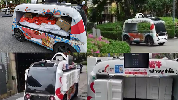 In Shanghai Mansion, Jiuliting Sub-district, a "Neolix unmanned vehicle" was delivering supplies at the community entrance between buildings before they were delivered from door to door. The vehicle provides contactless living supplies delivery services to address the problem of "last-10-meter" deliveries to a great extent.