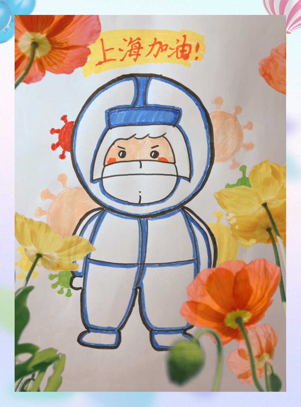 To convey children's wish to beat the epidemic, the Labor Union of SIG held "Kids Guard Shanghai from COVID-19" Family Works Exhibition online. Families of SIG's staff have taken active part in the activity since the call for works was released. 119 children contributed a total of 136 works in the forms of calligraphy & painting, drawing, handiwork and photo, to support the fight against the epidemic and demonstrate their love during epidemic control. Glimmers of light can make a galaxy. Despite school suspension, children created a multitude of affectionate and childish works themed "fighting the epidemic", to pay highest respect to frontline medical workers and volunteers, express their admiration and praise for anti-epidemic heroes, and demonstrate their yearning for a good life after the epidemic. Some outstanding works are as follows: