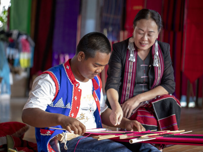 2024年,“文化遗美”项目聚焦国家级非遗佤族织锦,以“沪滇非遗对话”为主题,促成佤族织锦与上海海派绒线编结技艺的交流。同时,邀请上海大学上海美术学院设计团队,通过现代设计理念和工艺,为佤族织锦注入新活力,助力传统技艺符合市场需求。